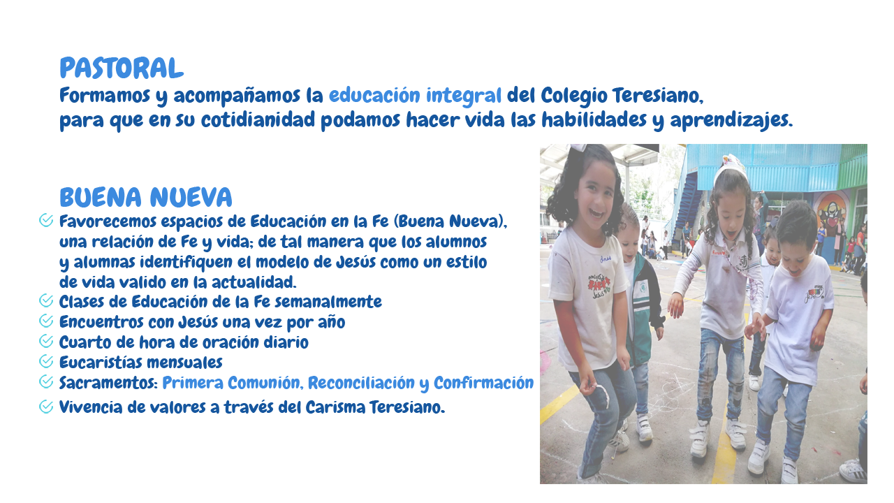 Formamos y acompañamos la educación integral del Colegio Teresiano, para que en su cotidianidad podamos hacer vida las habilidades y aprendizajes.