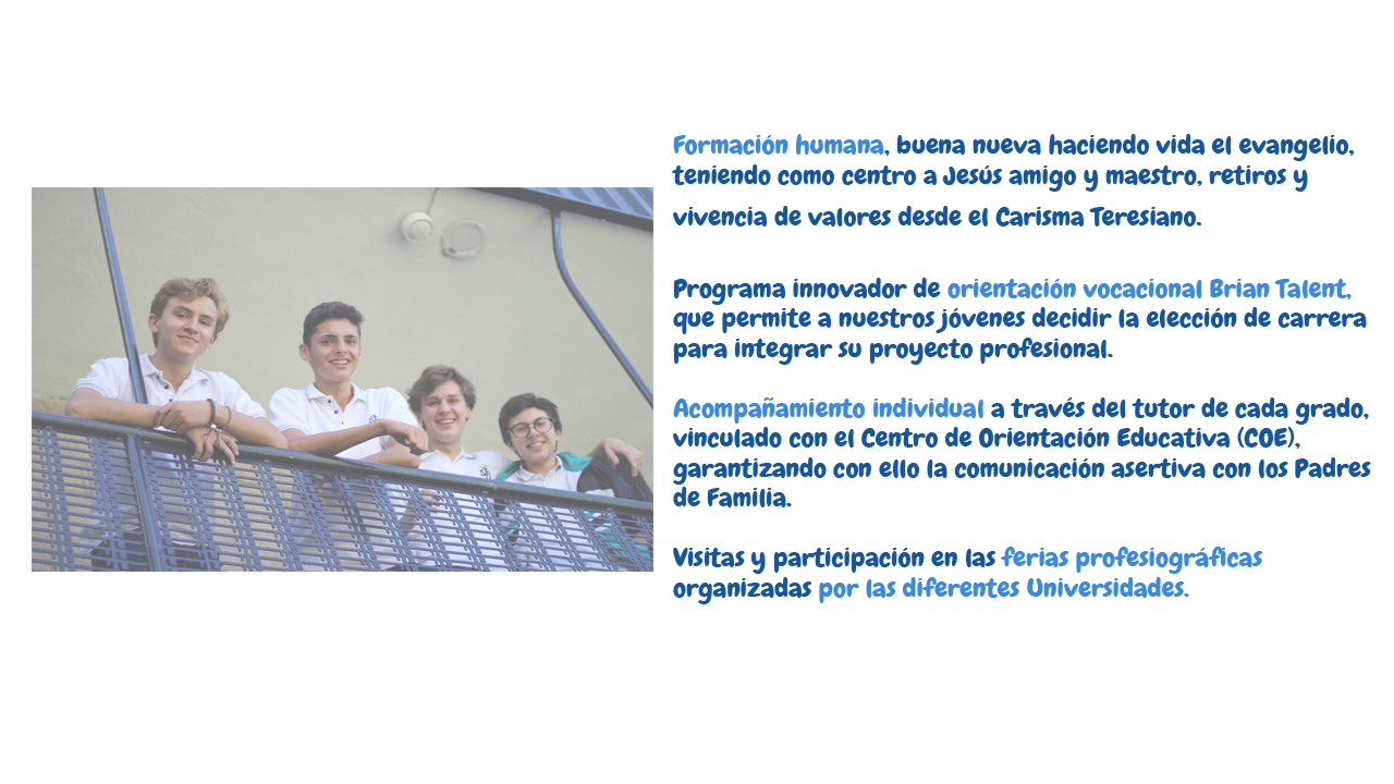 Formamos y acompañamos l educación integral del Colegio Teresiano, para que en su cotidianidad podamos hacer vida las habilidades y aprendizajes.
